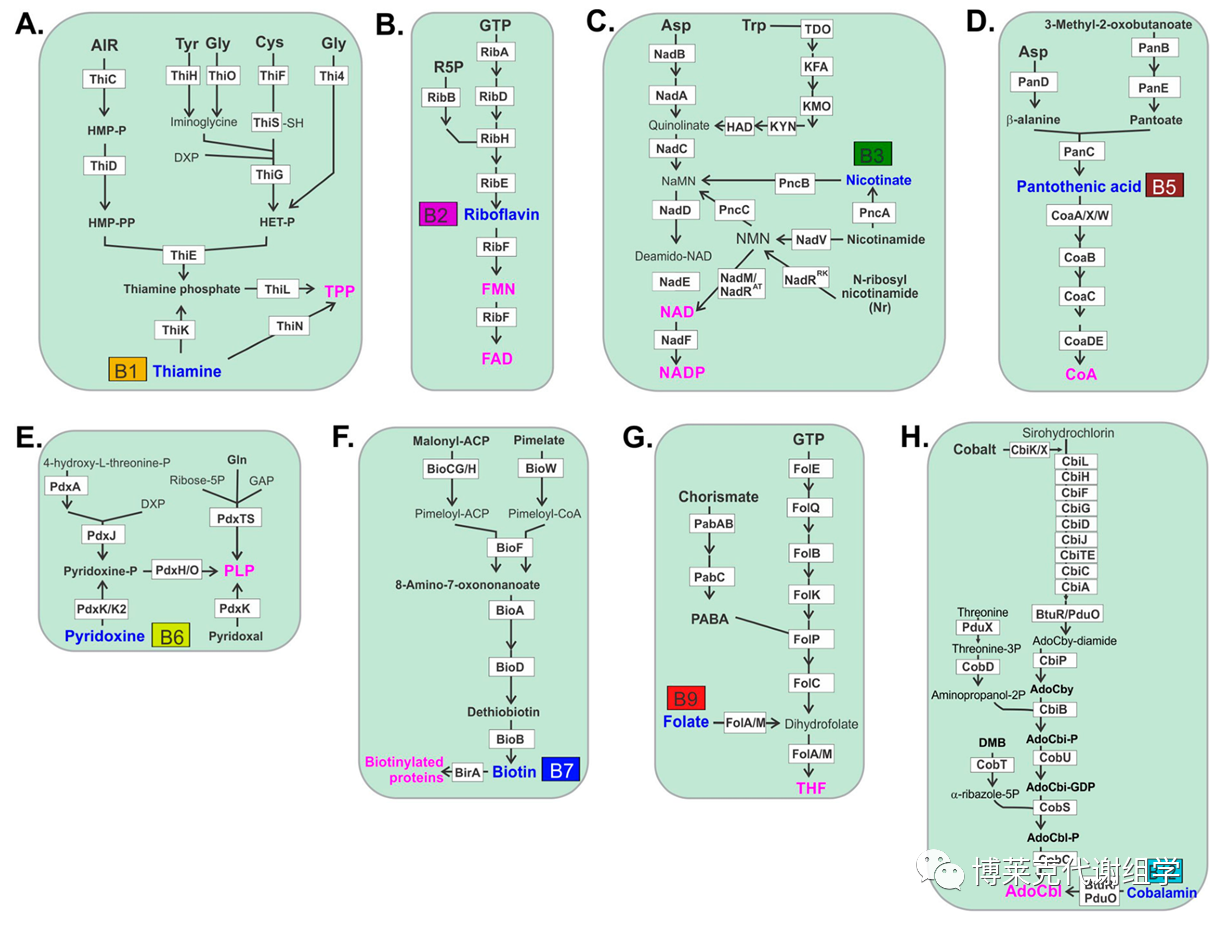 水溶性維生素(Water-soluble vitamins, WSVs)包括B族維生素和維生素C,是維持人體生命活動必須的一類有機(jī)物,參與機(jī)體代謝的調(diào)節(jié),也是保持人體健康的重要活性物質(zhì)。其中B族維生素是對在功能、結(jié)構(gòu)、理化特性上相似的一類維生素的統(tǒng)稱,其結(jié)構(gòu)中全部含有氮,均易溶于水,主要以輔酶的形式參與體內(nèi)多種物質(zhì)的合成和分解代謝過程,與血細(xì)胞的形成及能量的釋放有著密切關(guān)系。
